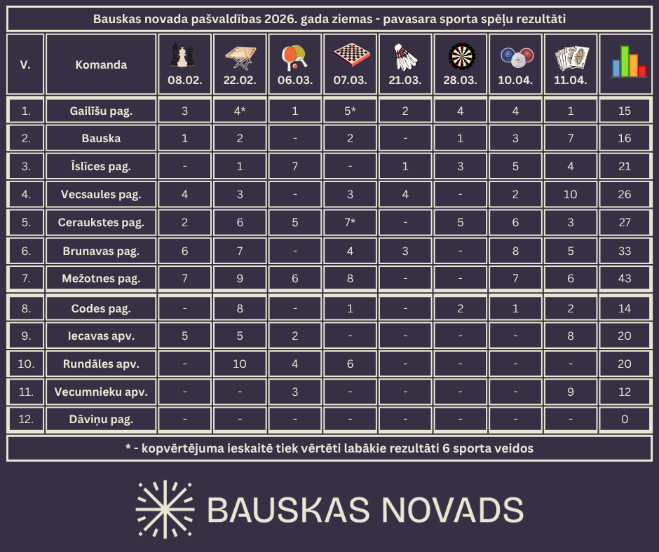 Noslēgušās Bauskas novada pašvaldības 2026. gada ziemas - pavasara sporta spēles